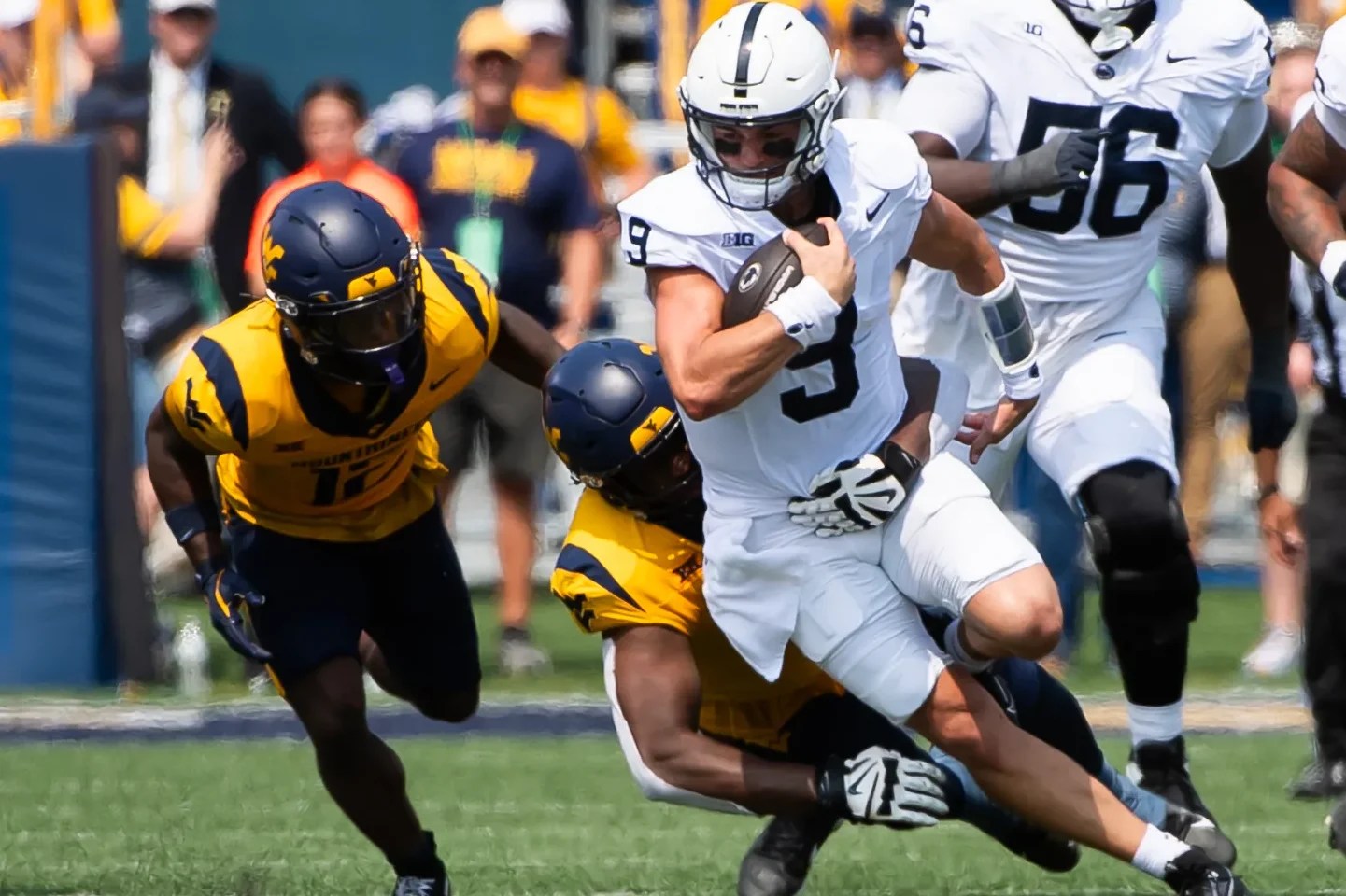 Winston’s forced fumble on Greene – although the Mountaineers were able to recover – had a lot to do with Penn State holding one of the best mobile QBs in college football to 5 rushing yards on 10 attempts. You were looking at a man who respects his opposing defense.